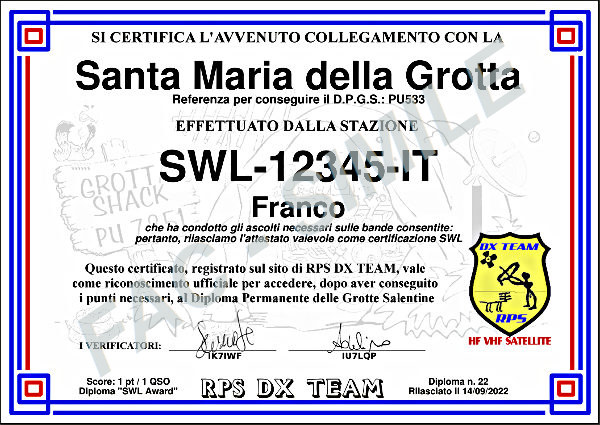 Buon radioascolto, dunque, a tutti gli amici SWL, con i diplomi di RPS DX TEAM!